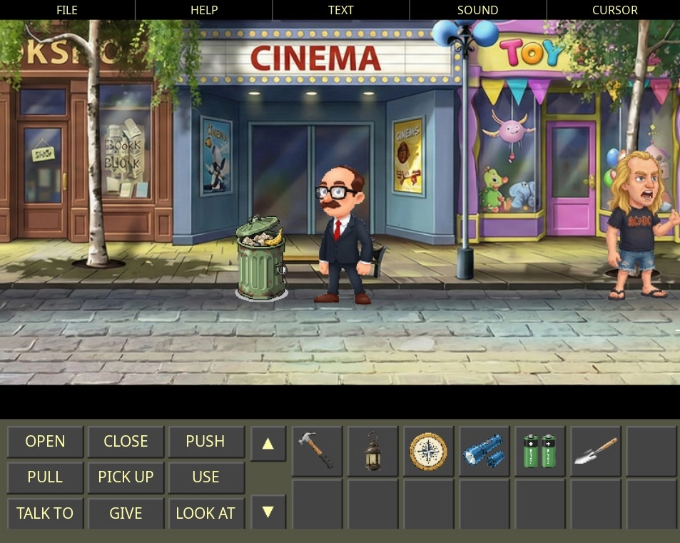 4. Inventario y «Bricomanía» Una aventura gráfica no es nada si no puedes llenar tus bolsillos de basura y combinarla. El sistema te permite arrastrar objetos unos sobre otros (¿Pilas + Linterna?) para crear nuevas herramientas y resolver problemas. Todo con sus sonidos correspondientes y respuestas ingeniosas si intentas mezclar cosas que no tienen sentido.